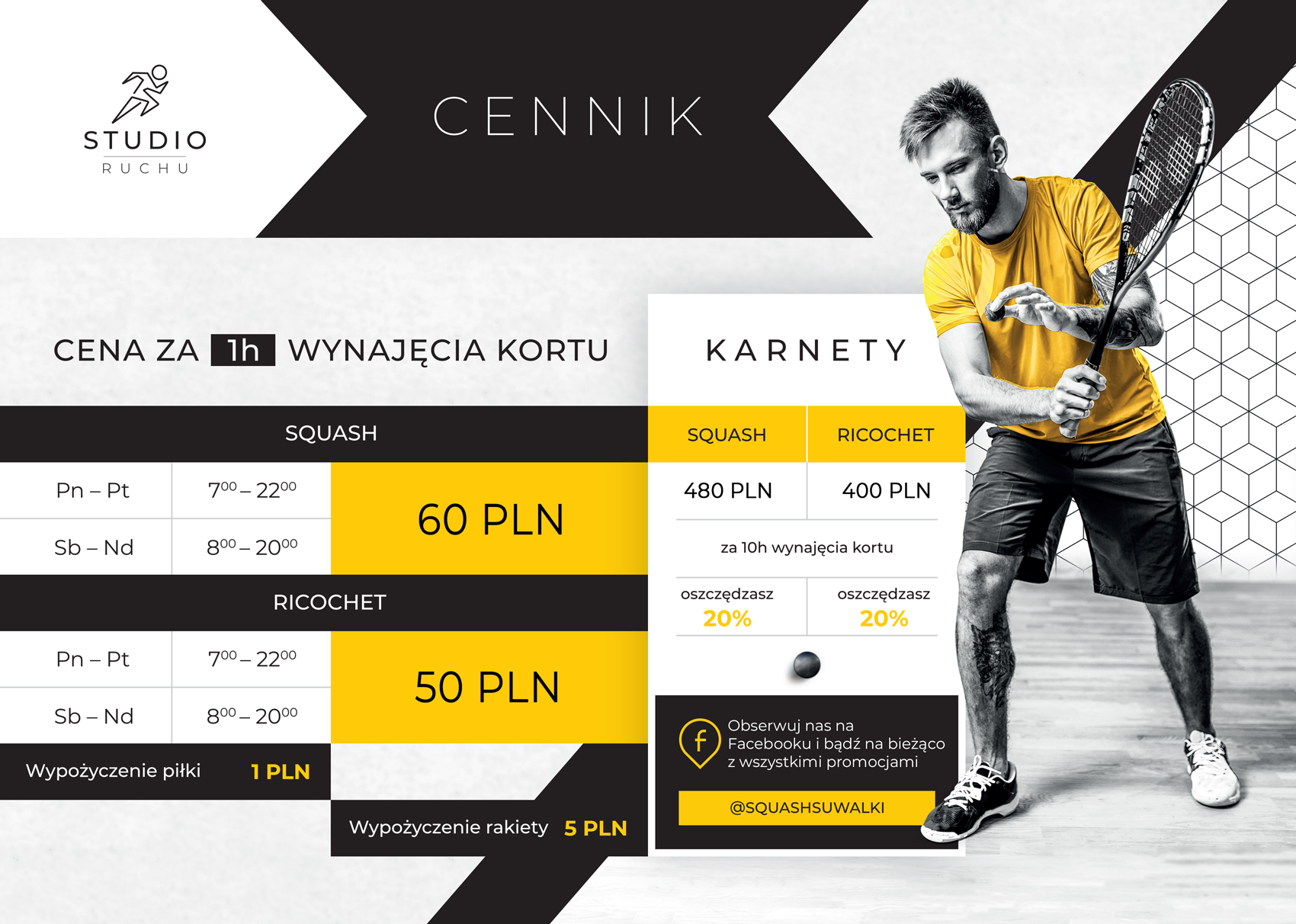 • Trening squash z trenerem w klubie Studio Ruchu Suwałki